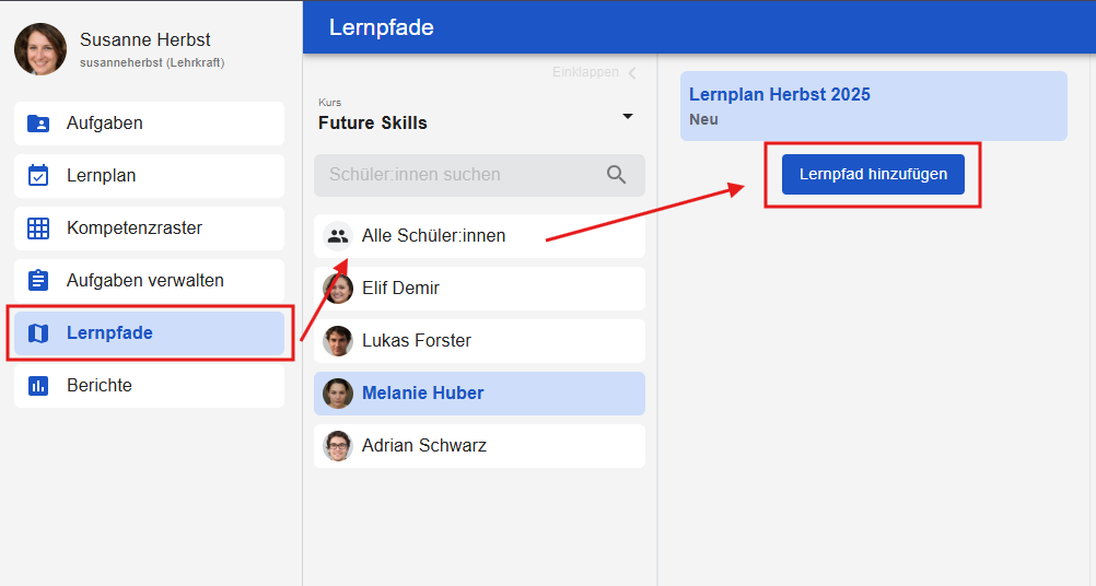 Um Lernpfade zu erstellen, gibt es den Tab “Lernpfade”.