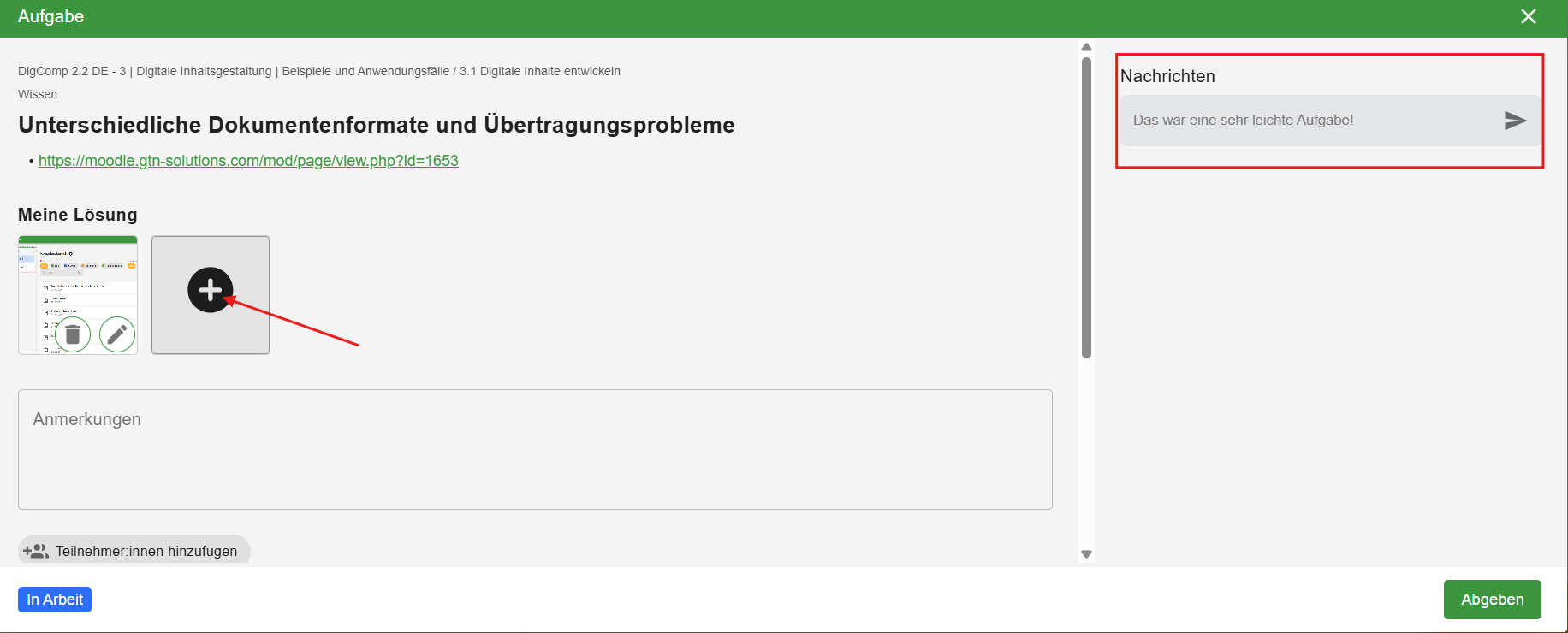 Nach der Bearbeitung können Sie Ihre Lösung als Bild, PDF oder in einem anderen Format hochladen.
