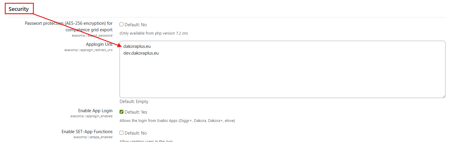 Under “App logins URLs,” add “dakoraplus.eu” and “dev.dakoraplus.eu.”