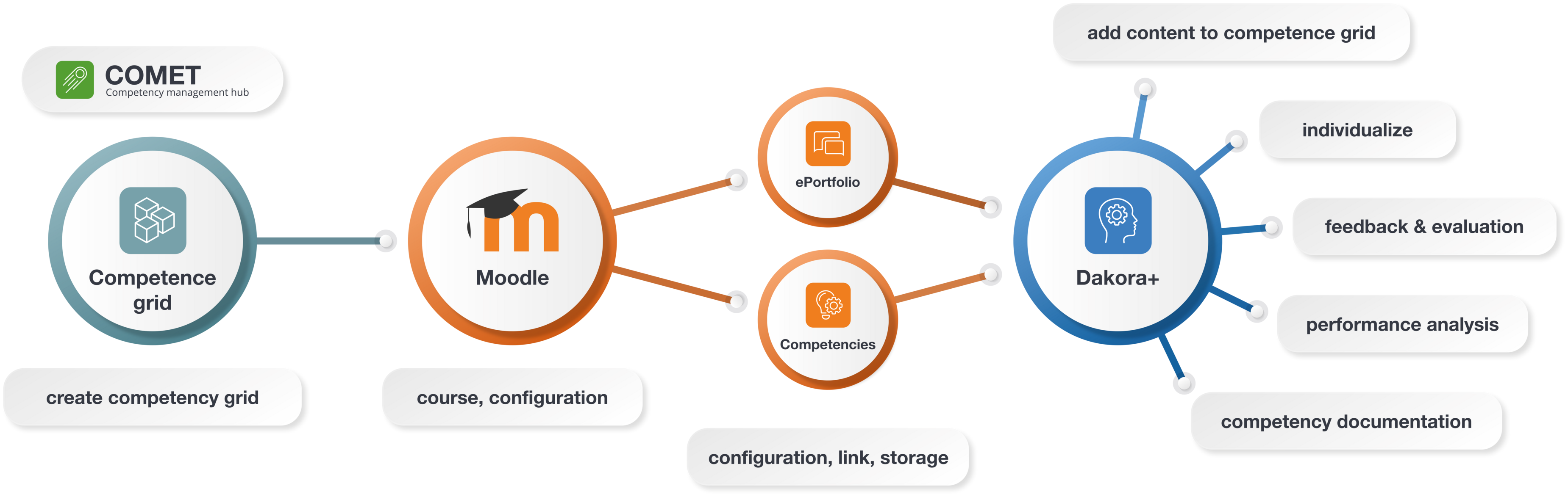 - Self-assessment and external assessment: Assessments at task and competency level by learners and teachers on different scales.