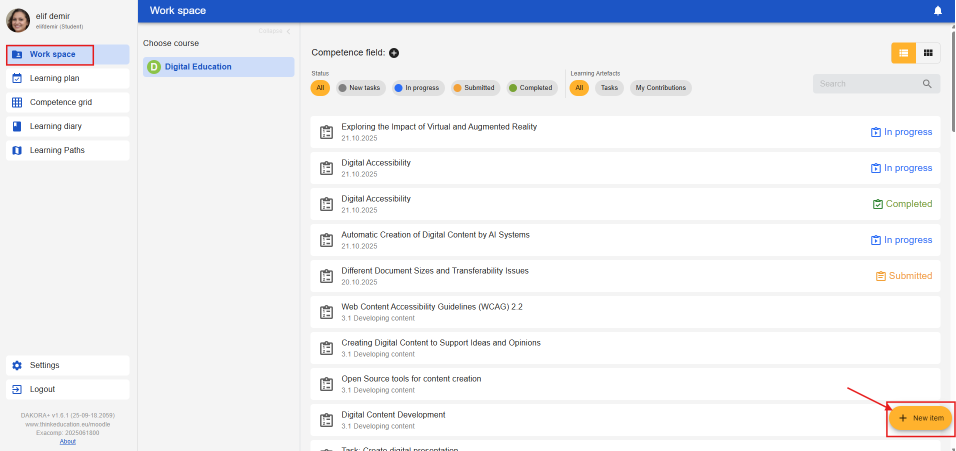 In Dakora+, learners acquire skills based on their performance. They receive learning materials and assignments assigned by teachers, work on them, and submit them.