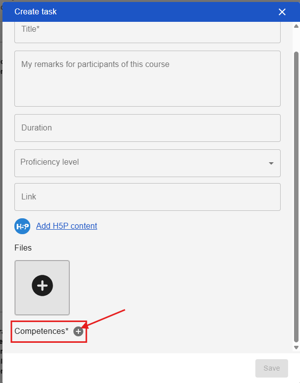 A pop-up form will open where you can enter information about the task. You can now add a link or file with the task or material. At the bottom of the form, you will find the option to add skills to the task.
