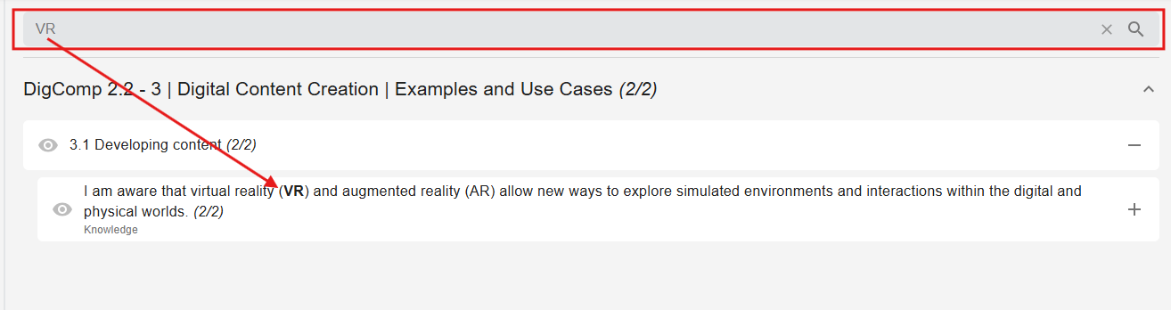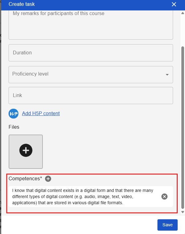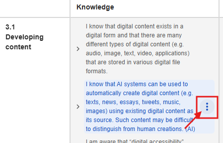 Clicking on the plus symbol brings up the digital competency grid with the individual competencies, from which you can select one or more to link to the task.
