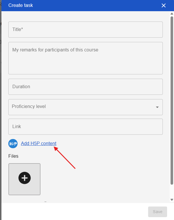 H5P provides very comprehensive tutorials and application examples, which can be found here for more detailed information. Once the H5P activity is complete, there is a button at the bottom to save the task. This is then transferred to the original pop-up window. Once the remaining information, such as the title and associated competency, has been selected, the interactive task can be saved.