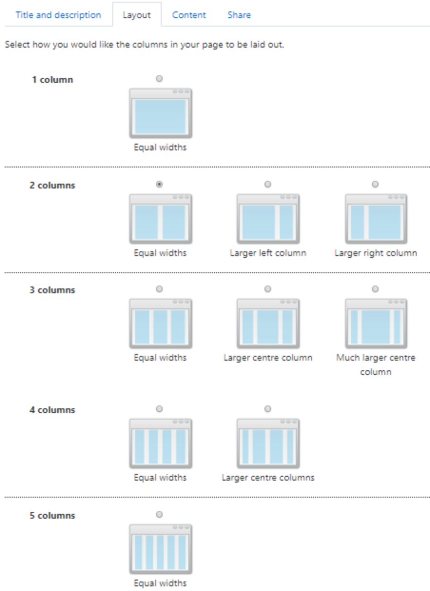 Beside the administration of views the layout can also be changed. Via sharing you can select who is able to see the view.