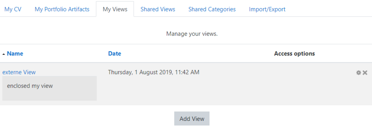 Published/shared views or categories can be found under the tabs "shared views" and "shared categories". After publishing a view, other Moodle-users can comment on the artifacts. If views are exported to the SCORM-format, comments can also be exported.