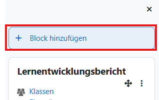 Um den Exabis KI Chat in einen Moodle Kurs hinzuzufügen, aktivieren Sie den Bearbeitungsmodus im Kurs und klicken Sie auf die Schaltfläche “Block hinzufügen”.